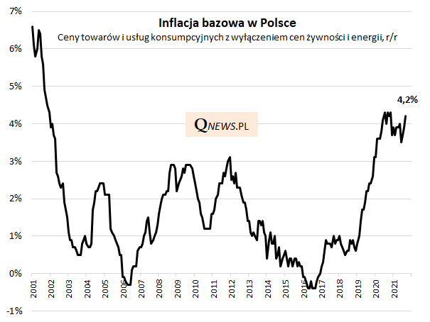 Najnowszy odczyt tzw. inflacji bazowej w Polsce za wrzesień (+4,2% r/r) potwierdza powrót do trendu wzrostowego po przejściowej zadyszce tego wskaźnika szczególnie bacznie obserwowanego przez ekonomistów. Widać, że presja inflacyjna przejawia się nie tylko w dość chwiejnych cenach żywności i energii, ale też w pozostałych komponentach, które właśnie obejmuje wskaźnik bazowy. Powrót w okolice poziomów najwyższych od dwóch dekad stawia pod znakiem zapytania retorykę "przejściowej inflacji"...