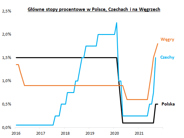 ... i jeszcze bardziej zaostrza debatę na temat polityki monetarnej. Po wczorajszej, piątej już w tym roku (!) podwyżce stóp procentowych na Węgrzech do 1,8% i trzech podwyżkach w Czechach (ostatnia, wrześniowa podniosła stopy do 1,5%), poziom kosztu pieniądza w Polsce wydaje się mimo październikowego ruchu Rady Polityki Pieniężnej ciągle relatywnie bardzo niski.