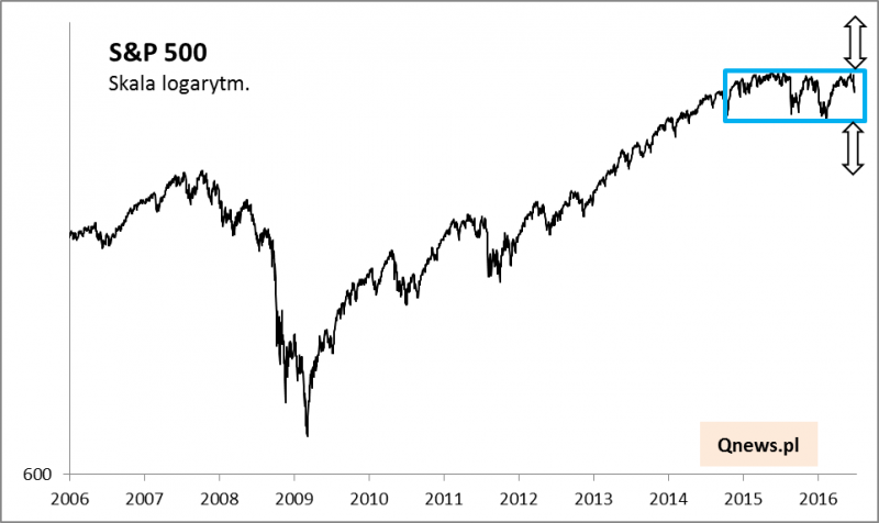 Histeria medialna dotycząca "Brexitu" może w pierwszej chwili sprawiać wrażenie, że na skutek brytyjskiego referendum doszło do jakiejś zasadniczej zmiany trendów na giełdach. Tymczasem przegląd wykresów globalnych aktywów pokazuje raczej, że nic wielkiego tak naprawdę się nie stało (no chyba, że z aktywami brytyjskimi, szczególnie funtem). Na najważniejszych rynkach nie doszło do przebicia żadnych kluczowych poziomów wsparcia, a co najwyżej "Brexit" przyczynił się do oddalenia się indeksów od poziomów oporu (szczytów) i utrzymania status quo. Najlepszym tego przykładem jest Wall Street. Wynik brytyjskiego referendum okazał się pretekstem do skorygowania się indeksu S&P500 o niecałe 6% od szczytu (licząc w cenach zamknięcia). Ta korekta niejako powstrzymała indeks od zaatakowania rekordu (2131 pkt. w cenach zamknięcia). S&P500 cofnął się w głąb tzw. konsolidacji, w jakiej tkwi już od niemal półtora roku.