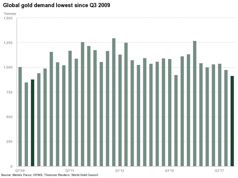 Szacowany globalny popyt na poziomie 915 ton w III kw. był najniższy od dokładnie ośmiu (!) lat.