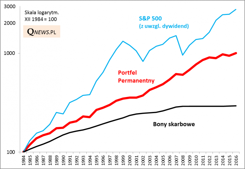 Rys. 2. Historyczna symulacja wyników "Portfela Permanentnego" w warunkach amerykańskich