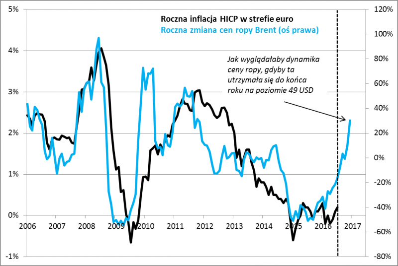 Na razie inflacja w Europie jest bardzo niska. Ale do końca roku roczna dynamika cen ropy naftowej – głównego czynnika decydującego o inflacji – mocno podskoczy. Wszystko za sprawą tzw. efektu bazy.