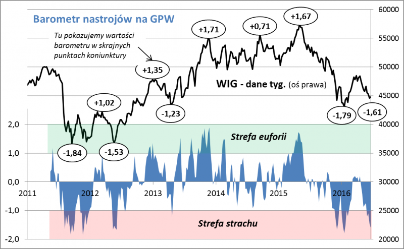 Obliczany przez nas zbiorczy barometr nastrojów zanurkował do poziomu -1,61 pkt. (dolna granica to -2,0 pkt.). Stąd niewiele brakuje już do styczniowego apogeum paniki.