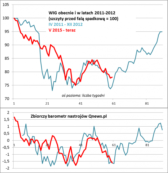 Ciekawostką jest to, że barometr zachowuje się bardzo podobnie jak w latach 2011-2012, kiedy to proces "udeptywania dna" po letnim krachu z 2011 r. przebiegał boleśnie dla inwestorów.