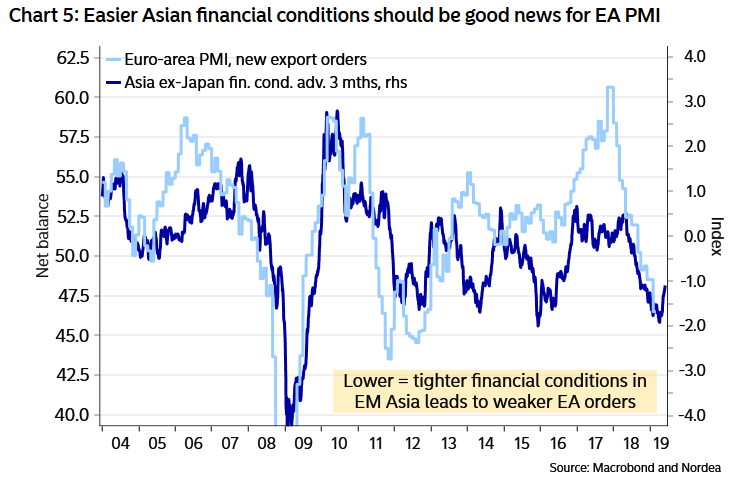 W lutym szybkie wskaźniki koniunktury w europejskiej gospodarce nadal spadały. Pojawiają się jednak argumenty za tym, że ta zadyszka być może dobiegła końca. Zdaniem strategów m.in. J.P. Morgan i Nordea Bank w kluczowej dla europejskich eksporterów azjatyckiej gospodarce pojawiły się silne pozytywne impulsy, związane m.in. z szeroko zakrojoną stymulacją w Chinach (pisaliśmy o niej m.in. tutaj).