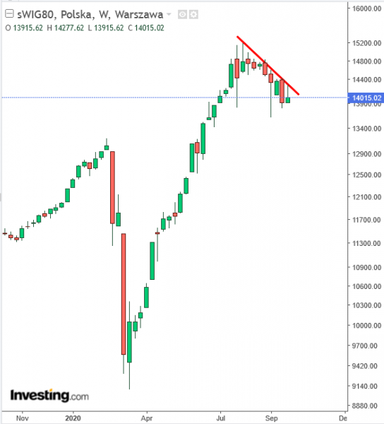 Indeks małych spółek na GPW ciągle nie zdołał zakończyć korekty spadkowej po wcześniejszym imponującym rajdzie. W ostatnich dniach znów znalazł się bliżej letnich lokalnych dołków.