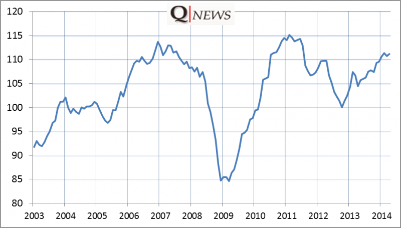Jak widać, wraz ze zbliżaniem się wskaźnika do szczytów z lat 2007 i 2011 będziemy coraz intensywniej się zastanawiać nad tym kiedy koniunktura osiągnie punkt kulminacyjny (po którym zacznie się na nowo pogarszać). Póki co jednak mamy do czynienia z poprawą, co jest swoją drogą spójne np. z ożywieniem na polskim rynku pracy.
