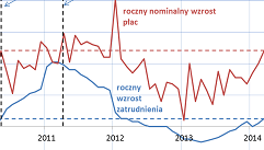 Rys. Zmiany zatrudnienia i płac w polskich firmach