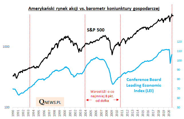 Reasumując, po takim odbiciu gospodarczego barometru LEI na Wall Street zdarzały się korekty spadkowe - obecna sytuacja zdaje się nie odbiegać od tej normy.