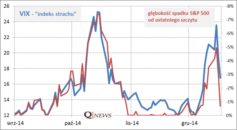 Po raz kolejny okazało się, że opłaca się śledzić wskaźniki takie jak „indeks strachu” (VIX). Jak wcześniej informowaliśmy, VIX znalazł się w trakcie ostatniej korekty niemal tak wysoko jak w trakcie wyprzedaży w październiku. Teraz zarówno po korekcie, jak i okazyjnym wystrzale VIX-a nie ma już niemal śladu.