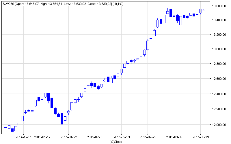 Zacznijmy od akcji małych spółek, które jak dotąd w tym roku są najmocniejszym ogniwem. Korekta, której można się było obawiać, przybrała na szczęście płaski kształt. Czwartkowe wejście sWIG80 na nowy szczyt trendu wzrostowego (na razie tylko w cenach zamknięcia) można uznać za próbę zakończenia tej korekty.