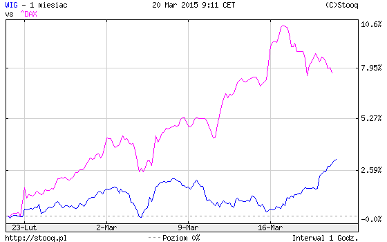 Warto odnotować jeszcze jedną kwestię. W ostatnim czasie rodzimy rynek wreszcie zaczął stopniowo odrabiać ogromne zaległości względem niemieckiego DAX-a, który po wcześniejszym wystrzale dostał zadyszki.