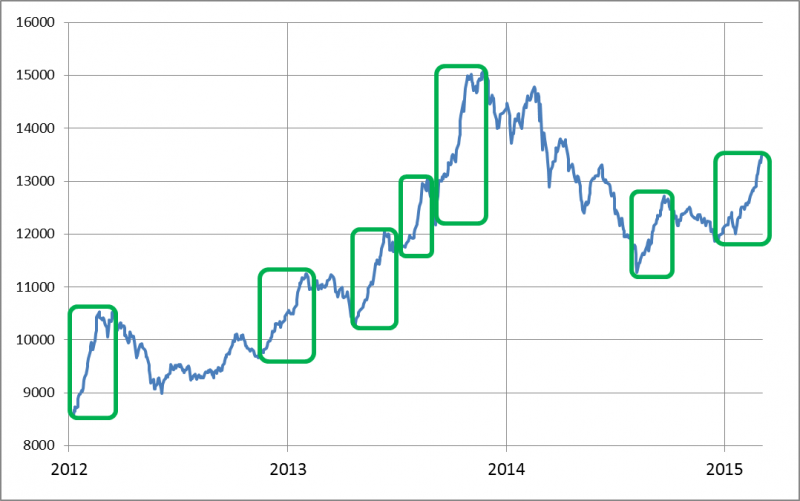 Ciekawe są też rezultaty innego porównania - okazuje się, że korekty spadkowe zabierały średnio rzecz biorąc 45% poprzedzającego ruchu wzrostowego. Skoro od grudniowego dołka sWIG urósł o 14%, to na tej podstawie można wyliczyć hipotetyczny zasięg korekty na ok. 6% (14% x 0,45). Na tyle można szacować krótkoterminowe ryzyko.
