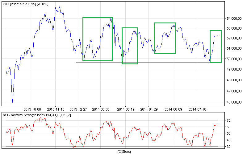 Rys. 1. WIG i wskaźnik RSI (dół)