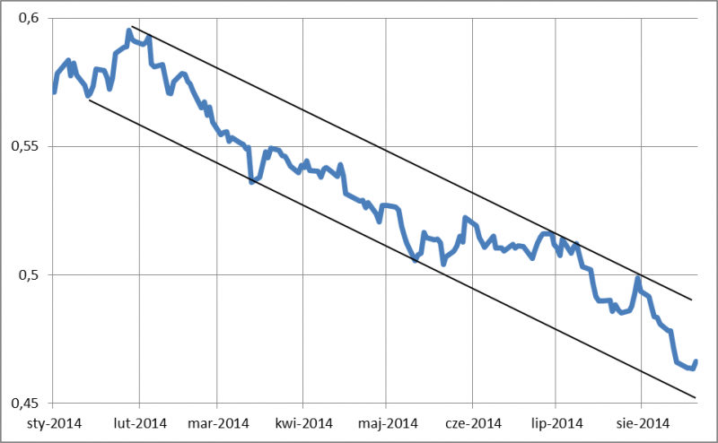 Dlaczego tak dużo miejsca poświęcamy małym spółkom? Bo po pierwsze to papierek lakmusowy polskiej gospodarki, a po drugie – w przypadku WIG250 łatwiej zauważyć zmiany trendów niż w przypadku chwiejnego WIG20. A propos gospodarki – w przyszłym tygodniu poznamy sierpniowe odczyty dwóch ważnych wskaźników wyprzedzających koniunktury: Ifo (nastroje niemieckich przedsiębiorców) oraz Pengab (koniunktura w sektorze bankowym). Czy także one pozostaną w trendzie spadkowym?