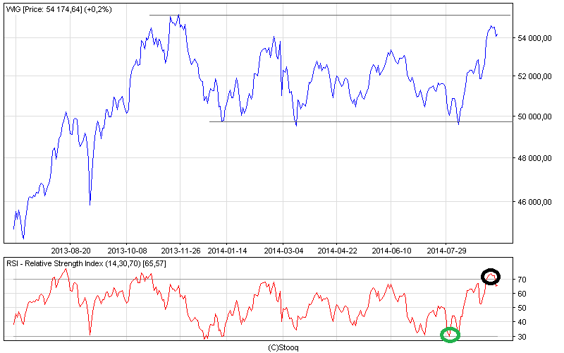Rys. 2. WIG i wskaźnik techniczny RSI (dół)