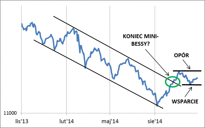 Niezależnie od kresek na wykresie, z naszych analiz opartych na wpływie stóp procentowych na giełdę i gospodarkę wynika, że wkraczamy w okres stabilizacji koniunktury, zaś w drugiej połowie I kw. 2015 r. można oczekiwać wyraźnego ożywienia na tzw. szerokim rynku, czyli w licznym gronie małych spółek.
