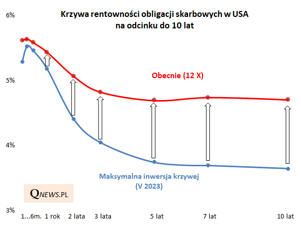 Ostatnio sporo pisaliśmy o szansach dla rynków akcji w (sezonowo często udanej) końcówce roku. A co z kolei mogłoby stanowić czynnik ryzyka dla pozytywnego scenariusza? O ryzyku takim przypomina tzw. krzywa rentowności amerykańskich obligacji. Wielokrotnie pisaliśmy o tym, że inwersja (odwrócenie) tej krzywej to sprawdzony prognostyk recesji w USA (tzn. po każdej inwersji nadchodziła prędzej czy później recesja), aczkolwiek niedający jednoznacznych informacji na temat dokładnego terminu nadejścia owej recesji.