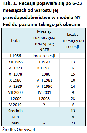 - Termin rozpoczęcia owej recesji jest niepewny – historycznie wynosił od zaledwie 6 do aż 23 miesięcy (średnio 13);