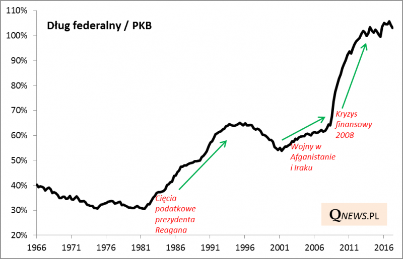 Nasz komentarz? Propozycje wypracowane przez prezydenta Trumpa ze sztabem doradców na papierze wyglądają rewelacyjnie - amerykańskie firmy zaczęłyby płacić znacząco niższe podatki, co przełożyłoby się na wyższe zyski. Byłby to też prawdopodobnie impuls do szybszego wzrostu gospodarczego. W praktyce dobrze będzie, jeśli w życie wejdzie choćby cząstka tych pomysłów. Dlaczego? Cytowani przez Reutersa niezależni eksperci wyliczyli, że wdrożenie reformy kosztowałoby ... 2,2 BILIONA dolarów w ciągu dziesięciu lat. A przecież już teraz dług federalny przekracza 100% PKB. Dla porównania - cięcia podatkowe prezydenta Reagana (1981), na które często powołuje się Trump, ruszyły przy zadłużeniu wynoszącym ok. 30% PKB.