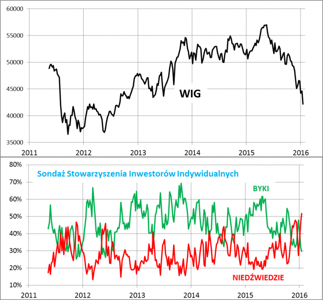 Z kolei odsetek byków (optymistów) spadł poniżej progu 30% - po raz pierwszy od połowy 2012 roku.