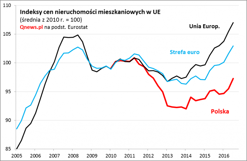 Eurostat opublikował wczoraj najświeższe dane dotyczące cen mieszkań w krajach UE. Okazuje się, że III kwartał ub.r. przyniósł kontynuację pozytywnych trendów. Co więcej, zagregowane indeksy cen mieszkań (HPI) dla całej UE oraz dla strefy euro zdołały wreszcie pokonać historyczne szczyty z 2008 roku, czyli sprzed globalnego kryzysu finansowego!