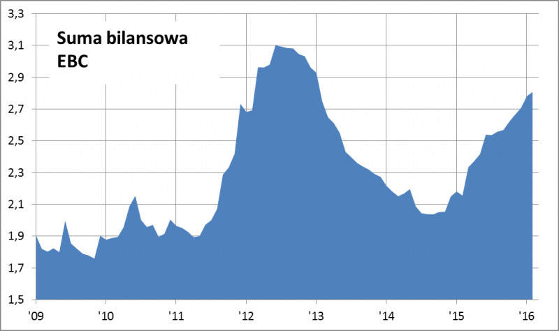Rys. 1. Suma bilansowa Europejskiego Banku Centralnego (bln EUR)
