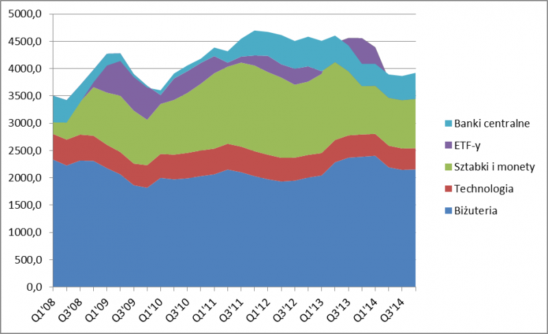 Mimo tych zjawisk trzeba jednak przyznać, że mimo spadku w ostatnich kwartałach, na dłuższą metę całkowity popyt na złoto jest w miarę stabilny.