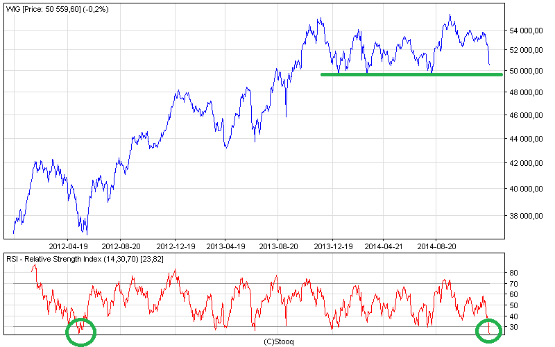 WIG w pobliżu poziomu wsparcia; wskaźnik RSI sygnalizuje wyprzedanie o skali największej od wiosny 2012 r.