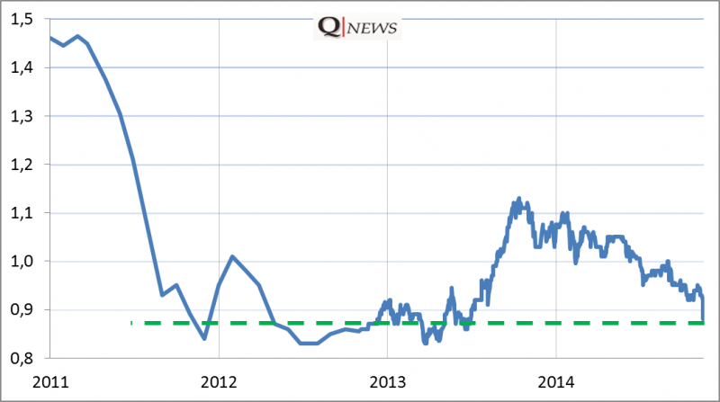 A co z fundamentami? Wydaje się, że w sferze realnej wpływ pogarszającej się kondycji Rosji na polski PKB powinien być ograniczony. W I półroczu udział Rosji w polskim eksporcie wynosił zaledwie 4%, a po wprowadzeniu embarga niewątpliwie jeszcze zmalał. Bardziej problematyczną kwestią jest wpływ wydarzeń w Moskwie na zachodni system finansowy – wydaje się, że tutaj koncentrują się obawy inwestorów. Banki komercyjne, przede wszystkim europejskie, były największymi kredytodawcami dla rosyjskich firm. Trudności ze spłatą mogłyby potencjalnie rzutować zatem pośrednio na europejską gospodarkę.
