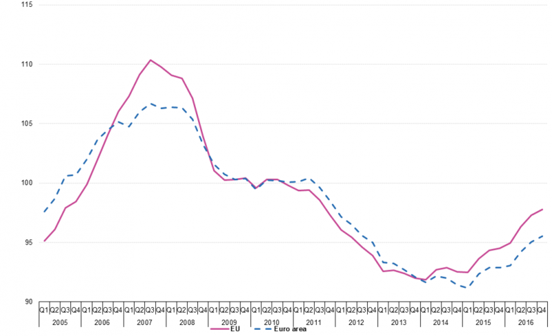 Nieruchomości mieszkalne to w przypadku większości osób/gospodarstw domowych prawdopodobnie najważniejszy składnik majątku. I z tego względu regularnie przyglądamy się trendom na rynku mieszkań i domów. Z najnowszych danych Eurostatu za IV kw. 2016 wynika, że średnio rzecz biorąc ceny w całej UE poszły za ciosem i znów pobiły historyczny rekord - europejski rynek nieruchomości wreszcie zdecydowanie odżywa i to jest dobra wiadomość. Oczywiście ten zbiorczy indeks to tylko średnia, na którą składają się dane dotyczące poszczególnych krajów. Na wykresie pokazujemy, że o ile kraje takie jak Szwecja czy Wlk. Brytania są na dłuższą metę liderami wzrostu cen, to na drugim biegunie jest np. Hiszpania, gdzie ceny od historycznych rekordów dzieli przepaść. Gdzieś pośrodku, trochę poniżej unijnej średniej plasuje się Polska.