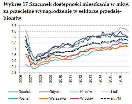 Na nieruchomości można też spojrzeć z punktu widzenia nie tylko opłacalności najmu, lecz również pod kątem tego czy przeciętnego nabywcę stać na zakup. W tym miejscu warto odwołać się do raportu naszego NBP.