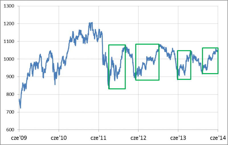 A tymczasem fala wzrostowa na emerging markets trwająca od wczesnej wiosny stopniowo osiąga już rozmiary porównywalne z poprzednimi trzema okresami poprawy nastrojów, które niestety nie okazały się trwałe. Pytanie czy bykom starczy sił, by tym razem wydźwignąć indeks powyżej granic trendu bocznego trwającego od ponad dwóch lat.