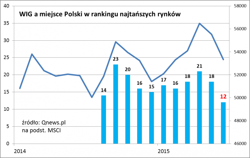 Nasze zestawienia pokazują ważne zjawisko: w okresach spadków na GPW nasz kraj szybko przesuwa się w kierunku najtańszych rynków, zaś w okresach silnej poprawy koniunktury rodzime akcje przesuwają się w kierunku droższych rynków.