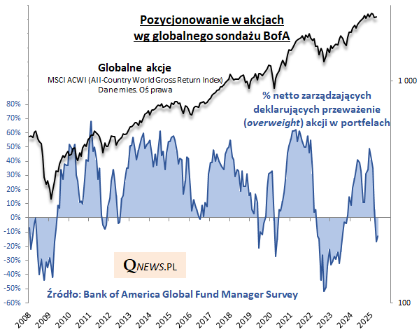 ... jak i udział gotówki w portfelach, który drgnął w dół, sygnalizując mniejszy strach wśród inwestorów.