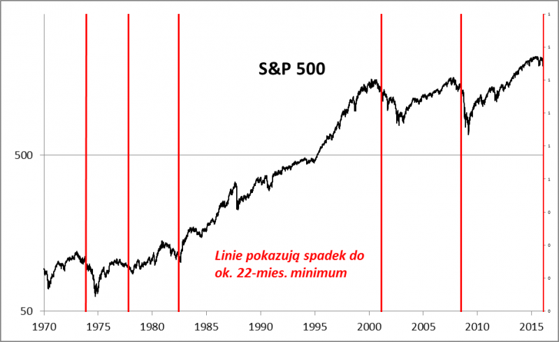 Jak widać, prawie dwuletnie minimum to zdarzenie stosunkowo rzadko spotykane. W zbadanym przez nas okresie obejmującym ponad 4 dekady takich sygnałów doliczyliśmy się do tej pory pięć. Trzy z nich (lata 2008, 2001, 1973) zwiastowały kontynuację bessy, ale sytuacja nie jest wcale jednoznaczna, bo w dwóch kolejnych przypadkach (lata 1977, 1982) trend spadkowy był już blisko końca.