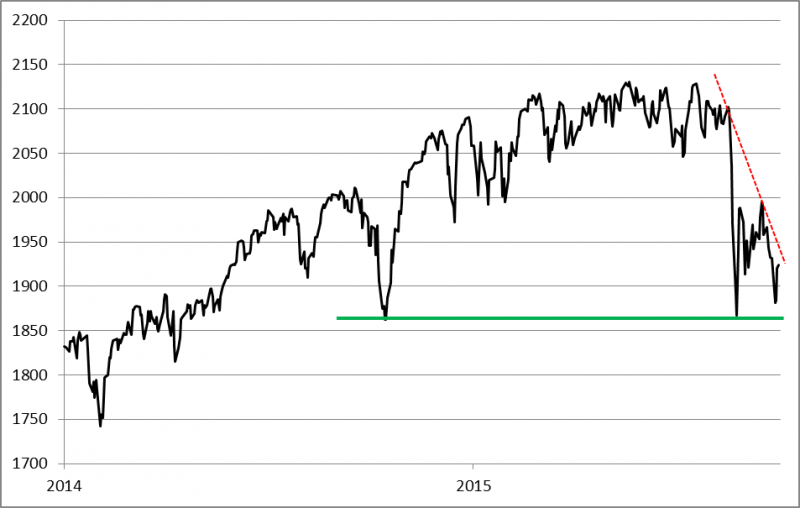 Trwa huśtawka amerykańskiego S&P 500 tuż nad poziomem wsparcia, który tworzy zarówno dno sierpniowej paniki, jak i dołek dynamicznej korekty sprzed roku.