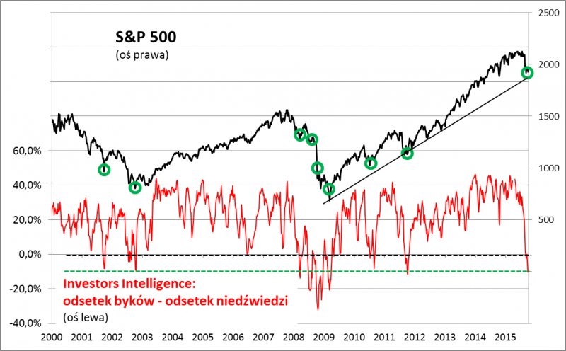 Jakkolwiek sytuacja taka nie gwarantuje końca spadków na Wall Street w średnim terminie (patrz: rok 2008), ale w zdecydowanej większości przypadków była w przeszłości raczej okazją do kupowania niż sprzedawania akcji (lata: 2002, 2009, 2010, 2011).