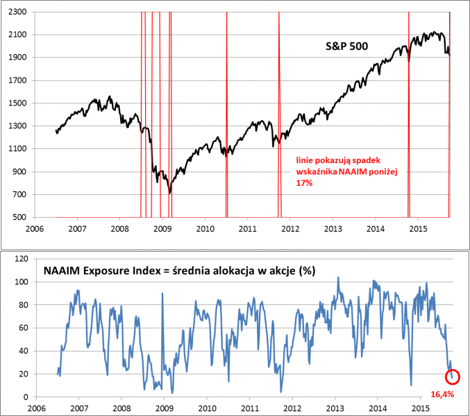 Do podobnych wniosków prowadzi najnowszy odczyt stowarzyszenia NAAIM grupującego doradców wyznających filozofię aktywnego zarządzania (w tym timingu).