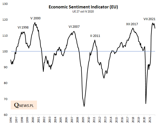 W piątek ta diagnoza zyskała potwierdzenie w postaci odczytu unijnego ESI (Economic Sentiment Indicator) najniższego od siedmiu miesięcy. ESI ewidentnie coraz mocniej zakręca w dół z poziomów odnotowanych wcześniej tylko na przełomie wieków.