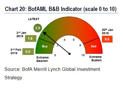 Od paru lat monitorujemy ciekawy wskaźnik taktyczny autorstwa strategów Bank of America/Merrill Lynch, czyli Bull & Bear Indicator. Na podstawie zestawu danych takich jak przepływy kapitału w globalnych funduszach, ma on za zadanie pokazywać skrajne emocje na rynkach akcji (a zarazem dogodne momenty do taktycznego kupowania/sprzedawania).