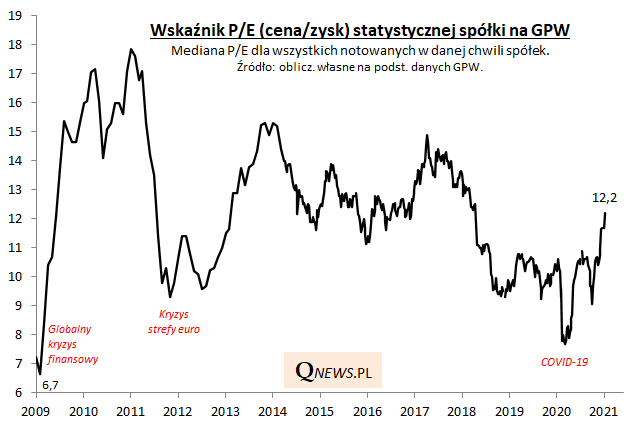 Widać, że bez względu na wersję, wskaźniki P/E wyraźnie się podniosły od czasu jesiennej "promocji" cenowej. Ale czy to oznacza, że jest już drogo?