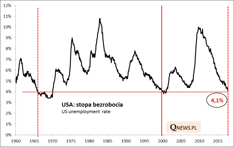 W październiku stopa bezrobocia w USA spadła do ... 4,1%. To nowe minimum w ramach trendu trwającego od 2009 roku (co ciekawe w październiku minęło dokładnie osiem lat od ustanowienia szczytu stopy bezrobocia na poziomie 10%).