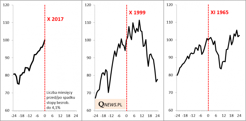 Jak widać te dwa historyczne scenariusze mocno się różnią. Jeśli szukać jakiegoś wspólnego mianownika, to można zauważyć, że w ciągu kilkunastu miesięcy od tak niskiego odczytu bezrobocia indeks wędrował co najmniej 16% poniżej punktu wyjścia. Czyli bessa - niekoniecznie (na szczęście), ale solidna korekta jest prawdopodobna?