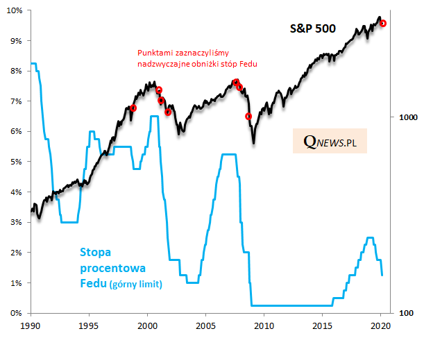 Ewidentnie nieplanowane "awaryjne" obniżki kosztów pieniądza miały miejsce w krytycznych okresach. Czy automatycznie pomogły rynkowi akcji? Nie będziemy się tu na siłę doszukiwać pozytywnej odpowiedzi. Zdecydowana większość z nich - z wyjątkiem tej z 1998 roku - pojawiła się w trakcie trwania lub nawet w początkowej fazie bessy.