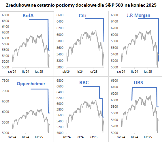 Reasumując, ostatnie przesunięcia poziomów docelowych traktować można jako swoisty barometr nastrojów. W tym kontrariańskim duchu ruchy te mogą przemawiać za nieco bardziej pozytywnym spojrzeniem na akcje w USA i nieco bardziej ostrożnym podejściem do złota w ramach portfela inwestycyjnego.