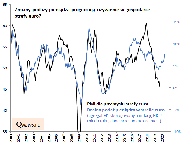 Reasumując, coraz szybszy wzrost (realny, czyli skorygowany o inflację) podaży pieniądza w strefie euro to wg historycznej zależności pozytywny sygnał dla Starego Kontynentu.