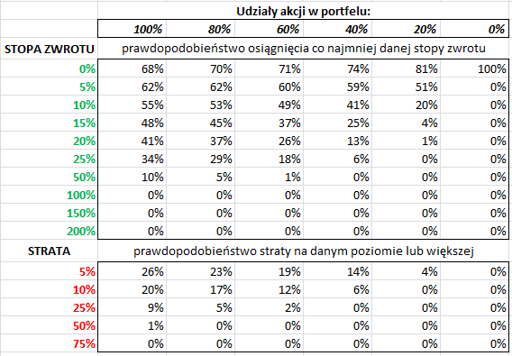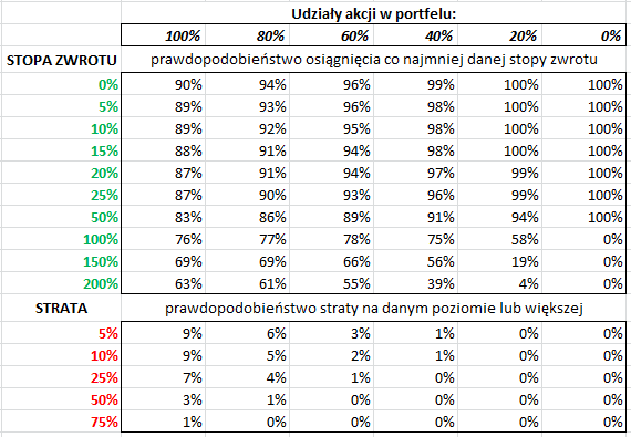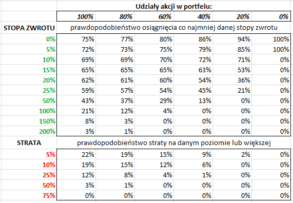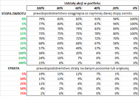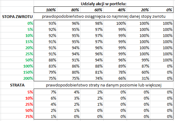 Na potrzeby naszej symulacji założyliśmy dla uproszczenia, że część nieakcyjna portfeli będzie zarabiać stale 3% w skali roku. Symulacja nie uwzględnia podatków (wszystkie stopy zwrotu są przed opodatkowaniem).