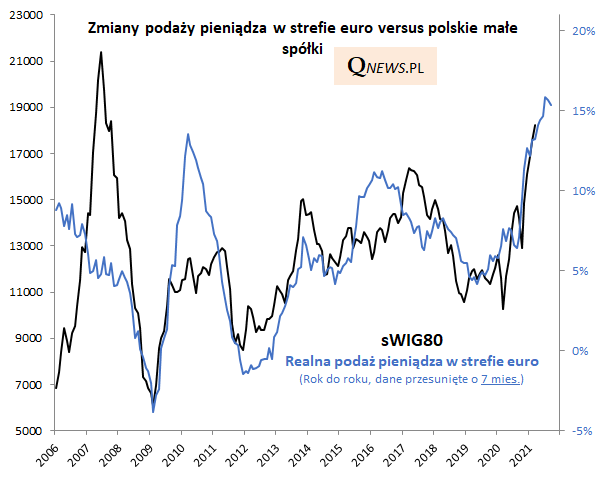 Odświeżamy koncepcję, w myśl której zmiany podaży pieniądza w strefie euro są przydatne w prognozowaniu z wyprzedzeniem: (a) wskaźnika PMI w strefie euro mierzącego koniunkturę w przemyśle, (b) trendów na rynku akcji polskich małych spółek.