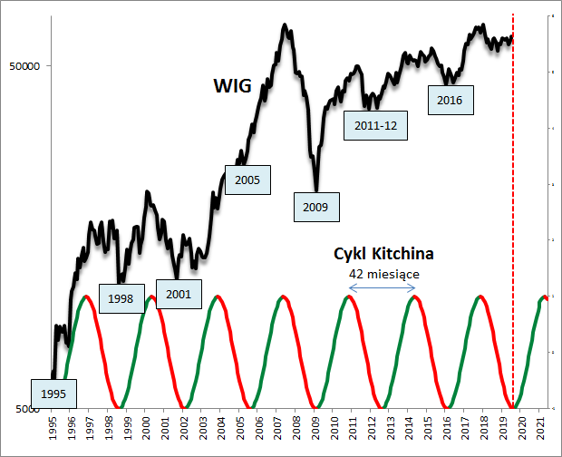 O fenomenie, jakim jest cykl Kitchina na GPW, pisaliśmy wielokrotnie. I wiele razy ta intrygująco prosta koncepcja przynosiła trafne wskazówki. Przykładowo już w połowie 2017 roku pokazaliśmy, że szczyt cyklu Kitchina wypadnie w okolicach stycznia 2018. I ... tak faktycznie się potem stało.